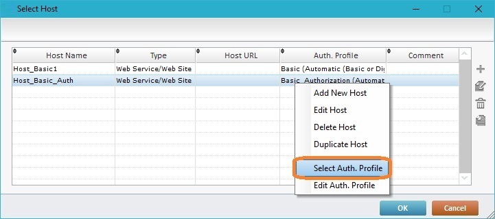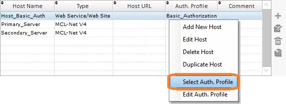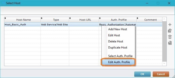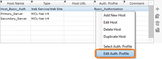 To create (or edit) authorization profiles, you must first access the Host profile table and create a "Web Service/Web Site" type Host profile.