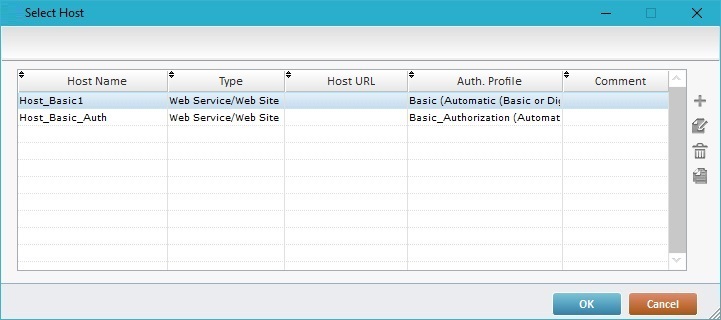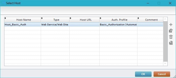 (if available) in the properties window of a Host related process. This opens another table displaying the Host profiles that can be used within the currently open process.