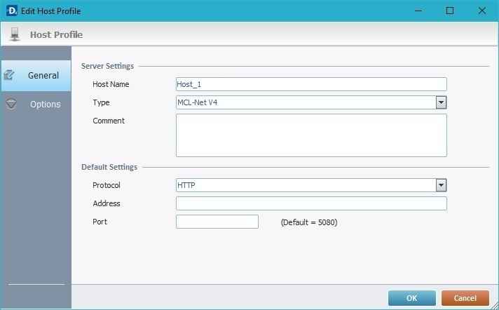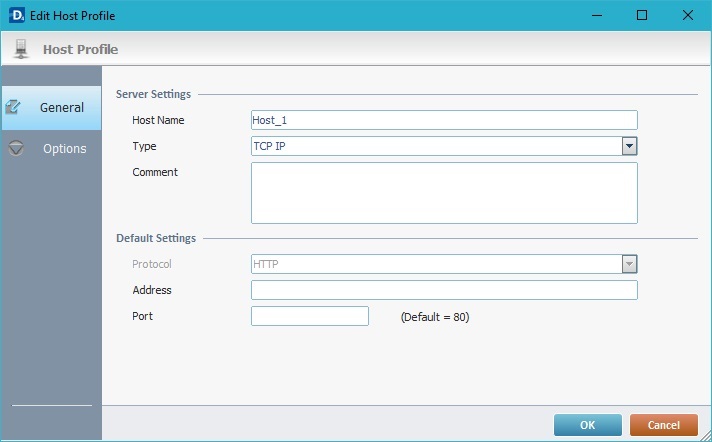 The "TCP IP" type Host uses a TCP IP socket on a specific port.