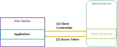 1.The application sends the client credentials to the Identity Server. Those are analyzed and the access token is returned to the application – (1);(2)