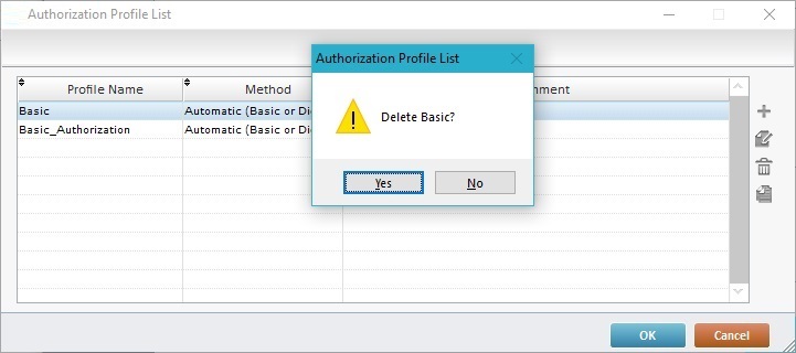 3. Select the authorization profile you want to delete (ex: Basic).
