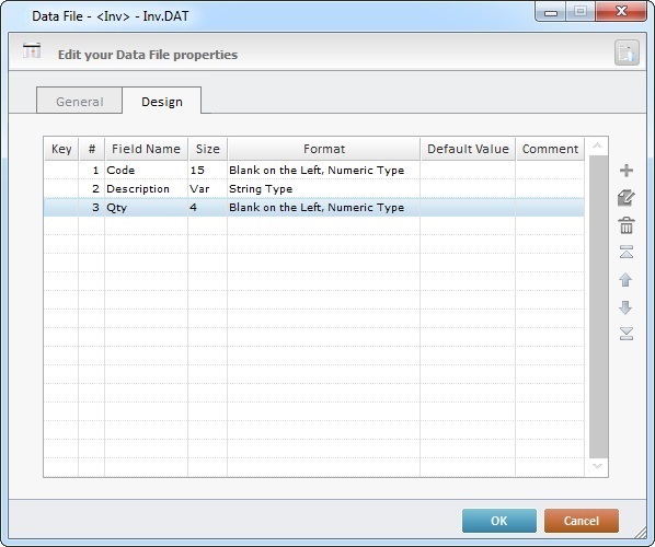 4. Use one of the following to open a window that relates to the selected data file field's properties:
