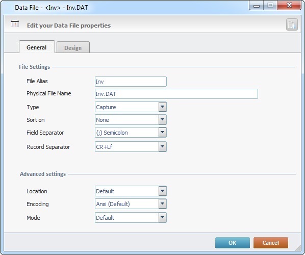 This option is NOT editable. To do so, return to the General tab and edit the "File Alias" and "Physical File Name" options. |
