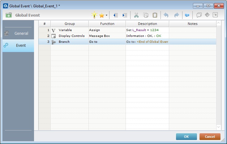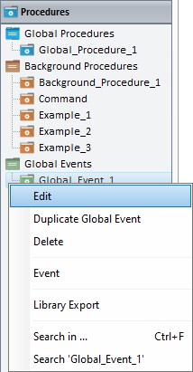 a. In the "Procedures" module, double-click the global event you want to edit (this opens the "Event" tab of the global event's properties window directly). this is particularly useful if you just want to edit the processes included in the global event.