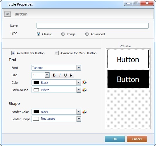 a. By default, the "Available for Button" option is checked. If you want to have this new style also available for the Menu Button control, check the "Available for Menu Button" option.