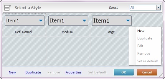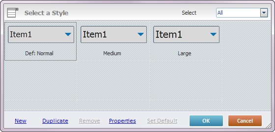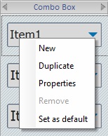 Sets the selected style as the default style ("Def:" is added to the style's designation). Once set, the default style will be adopted by all Combo Box controls dragged from the “Control” tab onto the screen. |