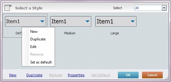 Defines the selected style as the default style for any Combo Box controls that are dragged from the “Control” tab onto the screen. |