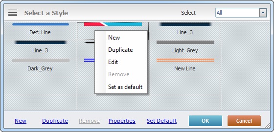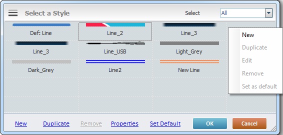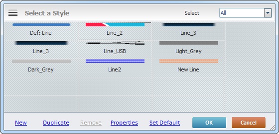 Defines the selected style as the default style for any Display Line controls that are “dragged” onto the screen. |