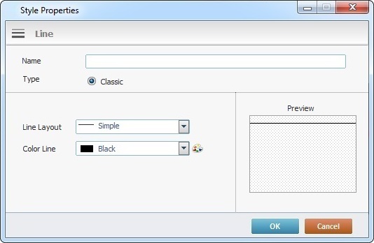 Whichever the option used (A or B), the creation of a new style occurs in the "Style Properties" window. Take the following steps to fill in/adjust the available options in this window: