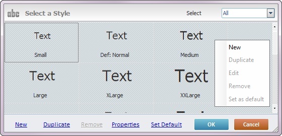 Click the “Change Style” option located on the control's right-click menu (see Editing and Creating Styles). The resulting window displays the following options: