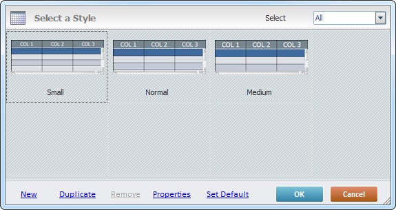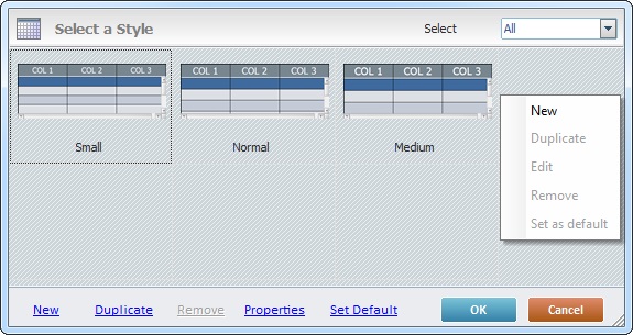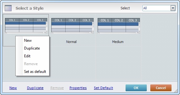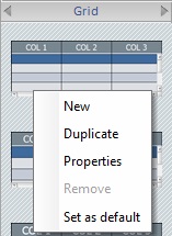 Sets the selected style as the default style ("Def:" is added to the style's designation). Once set, the default style will be adopted by all Grid controls dragged from the “Control” tab onto the screen. |