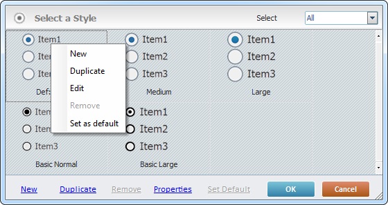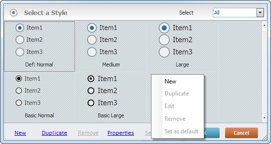 Click the “Change Style” option located in the control's right-click menu (see Editing and Creating Styles). The resulting window displays the following options:
