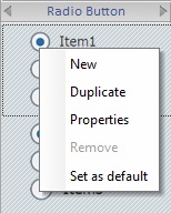 Sets the selected style as the default style ("Def:" is added to the style's designation). Once set, the default style will be adopted by all Radio Button controls dragged from the “Control” tab onto the screen. |