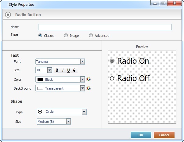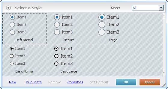 Defines the selected style as the default style for any Radio Button controls that are dragged from the “Control” tab onto the screen. |