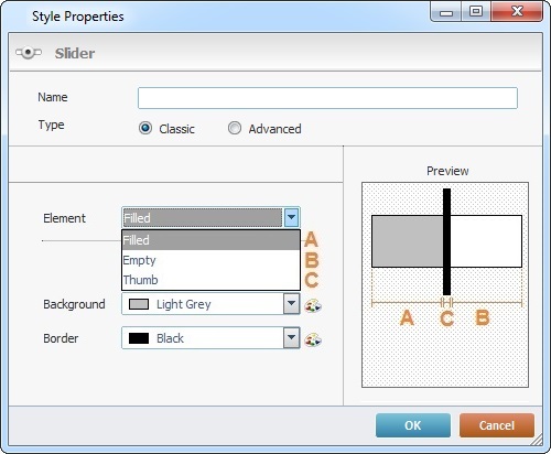 a. Select the element ("Filled", "Empty", "Thumb") that will be edited in the next two option boxes.