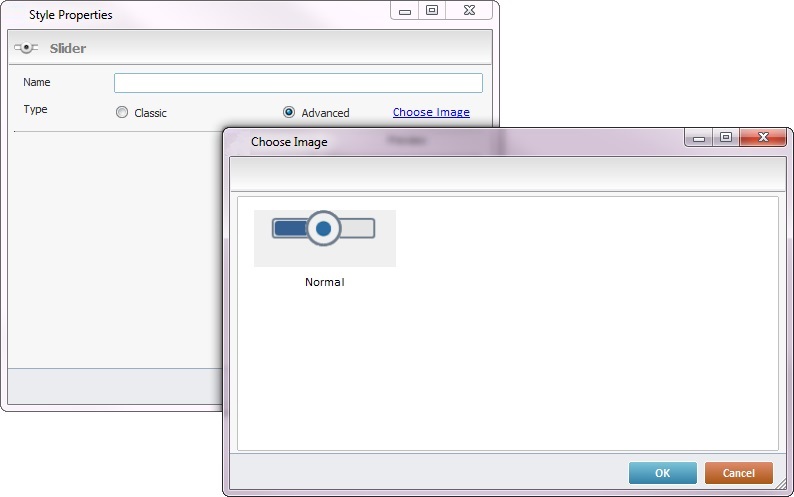 When selecting the “Advanced” option, you can substitute the Slider's default image (step a) or simply edit the control further (go to step c).