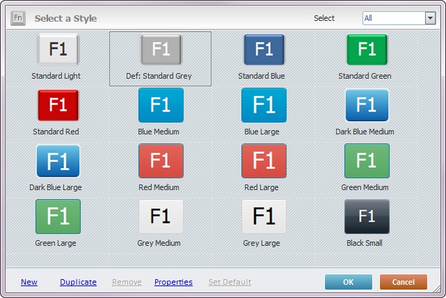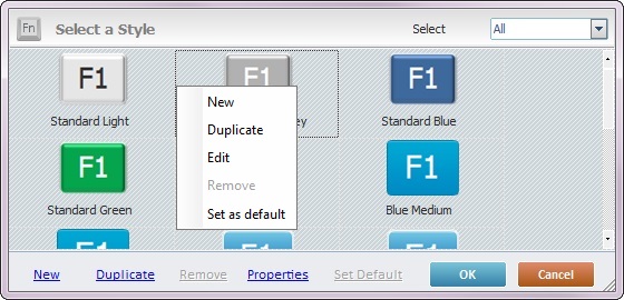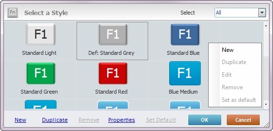 Sets the selected style as the default style ("Def:" is added to the style's designation). Once set, the default style will be adopted by all SoftKey controls dragged from the “Control” tab onto the screen. |