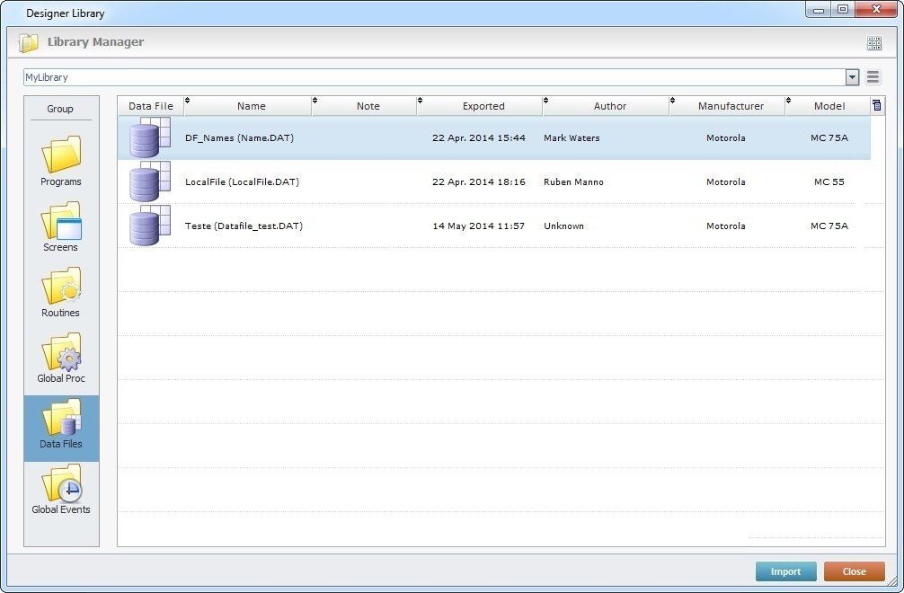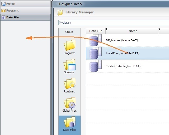 Data Files that have been developed within MCL-Designer are reusable. With the use of the Library (a folder that stores reusable elements such as data files, programs, screens, etc.) and the "export"/"import" procedures, data files created in a specific MCL-Designer project can be exported (into Library) and, later on, be imported into another project or projects (from Library).