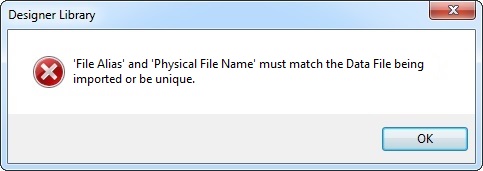 a. Enter a new data file alias/physical name that does not exist in the current project. b. Click