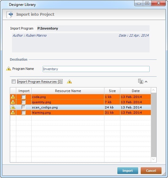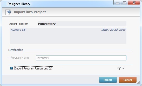 If the program contains resources, check this option to ensure they are included in the import. Their destination is the target project's "Resources" module. |