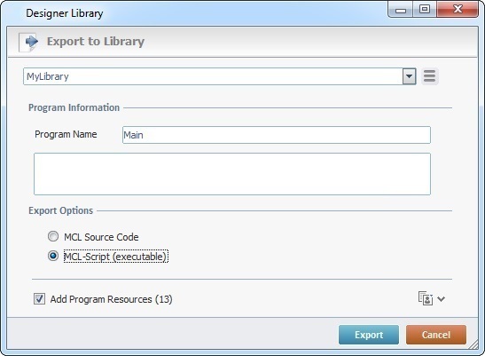 Check this option if you want the settings/content of the program being exported to be available for editing once it is imported into another MCL-Designer V4 project. |