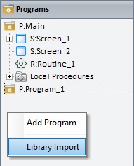 C. Right-click an empty area of the "Programs" module and select "Library Import".