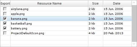 If the program contains resources, check this option to ensure they are included in the export. These resources can refer to image files, sound files, text files, language files containing the exportable element's localization tags, etc. |