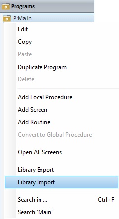 D. Right-click any program of the "Programs" module and select "Library Import".