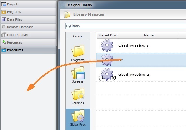 b. Drag the intended global procedure and drop it into the destination project's "Procedures" module.