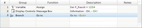 The use of a "Go to: <Exit>" •returns the program to the line, immediately below, that, initially, called for the global procedure. •provides the global procedure's Out Param variable values. |