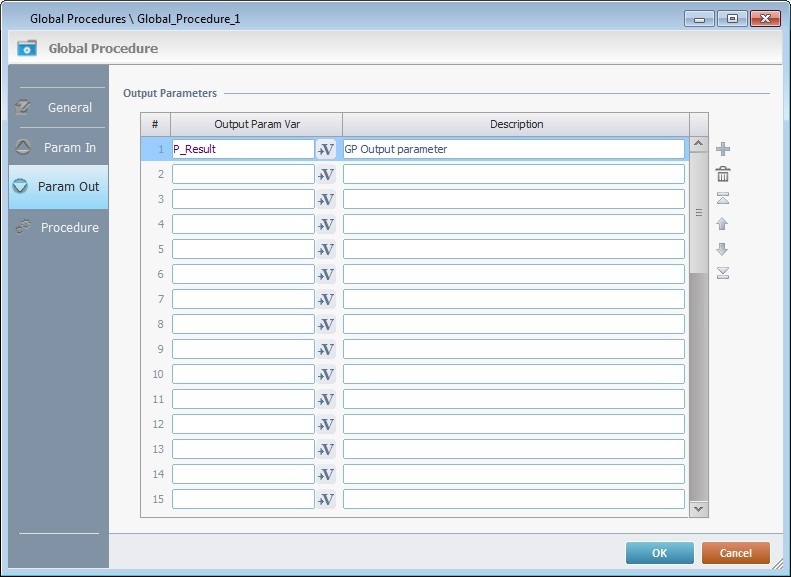 Use this column to add a description for the output parameter - the description will be used to identify the global procedure's output parameter(s) in a "Call Global Procedure".