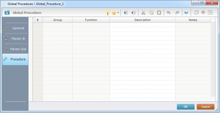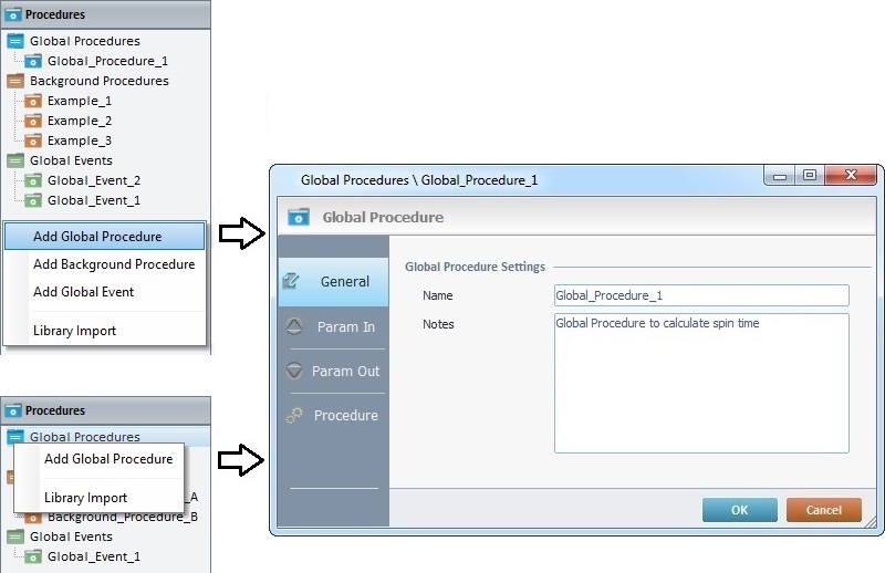 As an alternative, you can import an existing global procedure from library. See To Import a Global Procedure from Library.