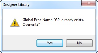•If the library already contains a global procedure with the same name, the following message box appears:
