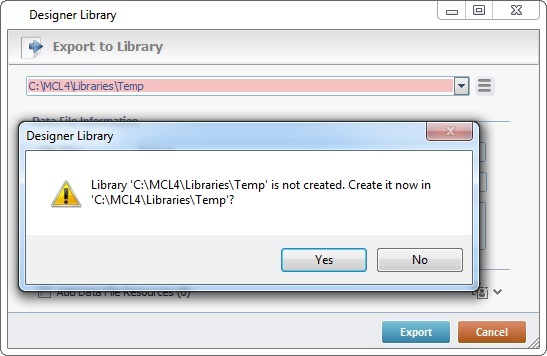 •If, instead of selecting an existing "library", you enter the name of a non-existing folder to be the destination for your global procedure export, you get the following message: