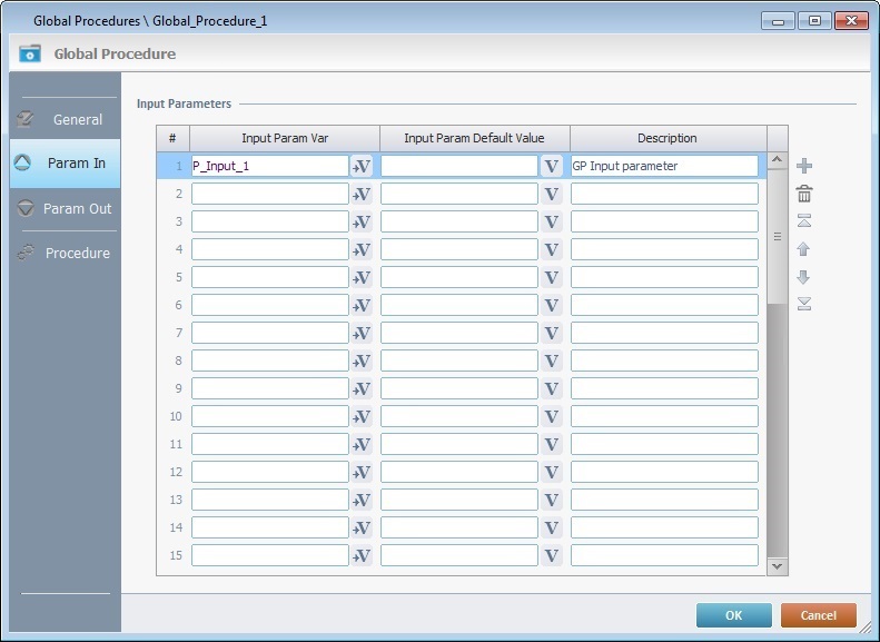 Use this column to add a description for the input parameter - the description will be used to identify the global procedure's input parameter(s) in a "Call Global Procedure" process.