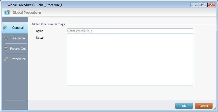 In the "General" tab, enter a name for the global procedure. This name is displayed in the tree view.