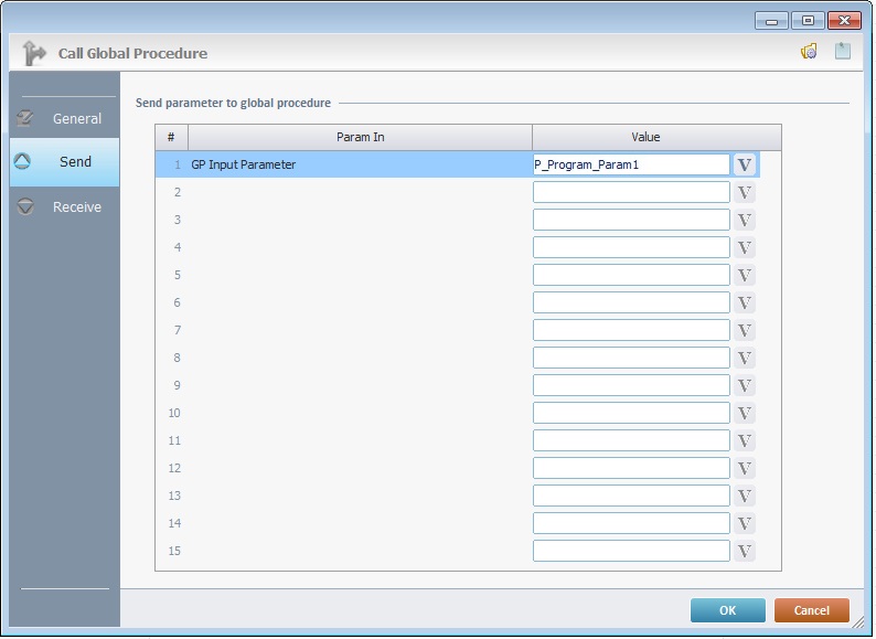 In ("Send" tab) /Out ("Receive" tab) Parameters of a "Call Global Proc" Process |