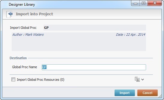 You can either opt to change the name of the global procedure that already exists in the destination project (if it is not locked) and keep both global procedures OR proceed with the import, in which case, the newly imported global procedure will overwrite the one that already exists in the destination project.