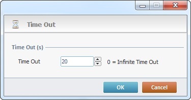 If the time out is associated to Print/Aux related processes, the "Time Out" window is slightly different. See To Define a Time Out for a Print/Aux Process.