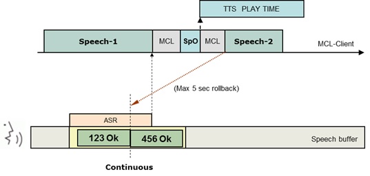 This mode is very useful when there are a lot of repetitive prompts because the operator does not have to wait for the end of each speech out to say a confirmation/speech input.