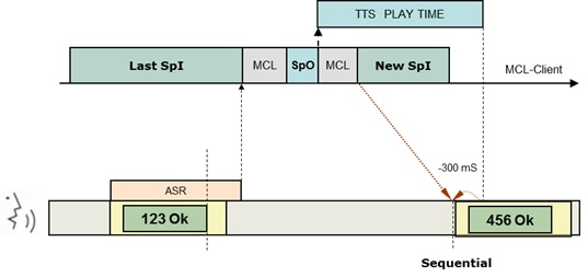 The interaction between speech input and output is managed by defining the dialog's "Sync Mode".