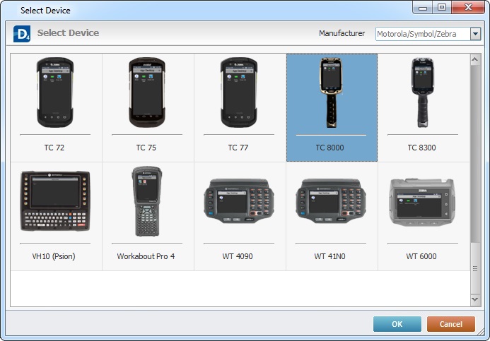 to open a "Select Device" window and select a device from the available listed devices: