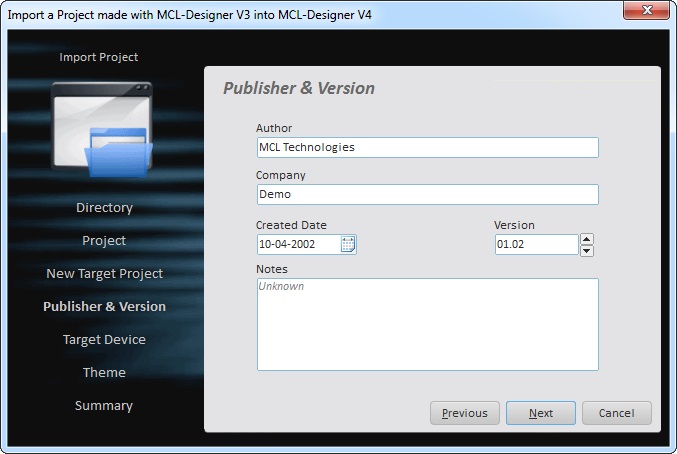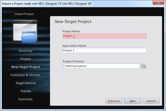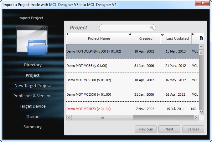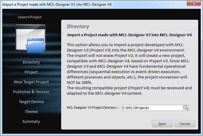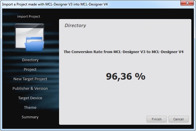This feature allows for the importing of projects developed in MCL-Designer V3 to MCL-Designer V4.