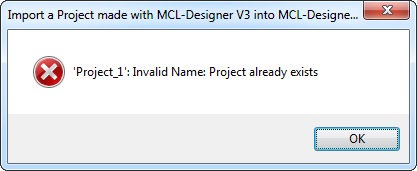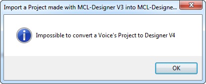 If the project was developed in an MCL-Designer V3 version other than v3.21, the following error message appears: