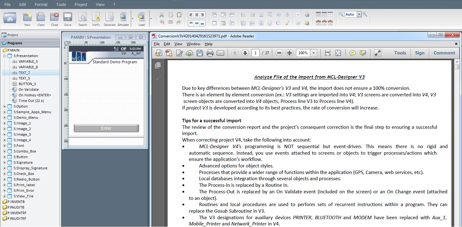The main condition to importing an MCL-Designer V3 project into V4 is that the V3 project must have been developed in the last V3 version (v3.21).