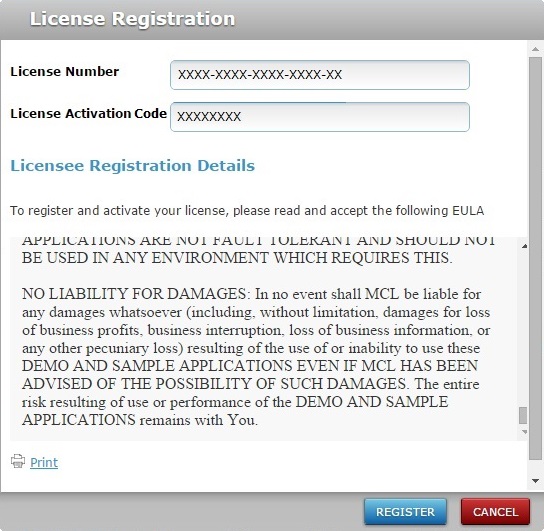 Each time an MCL-Designer license is acquired, you will receive an email ("subject: License Delivery Notification") with license details and a link to the MCL-License Manager so you can register that license ("Registration Link").