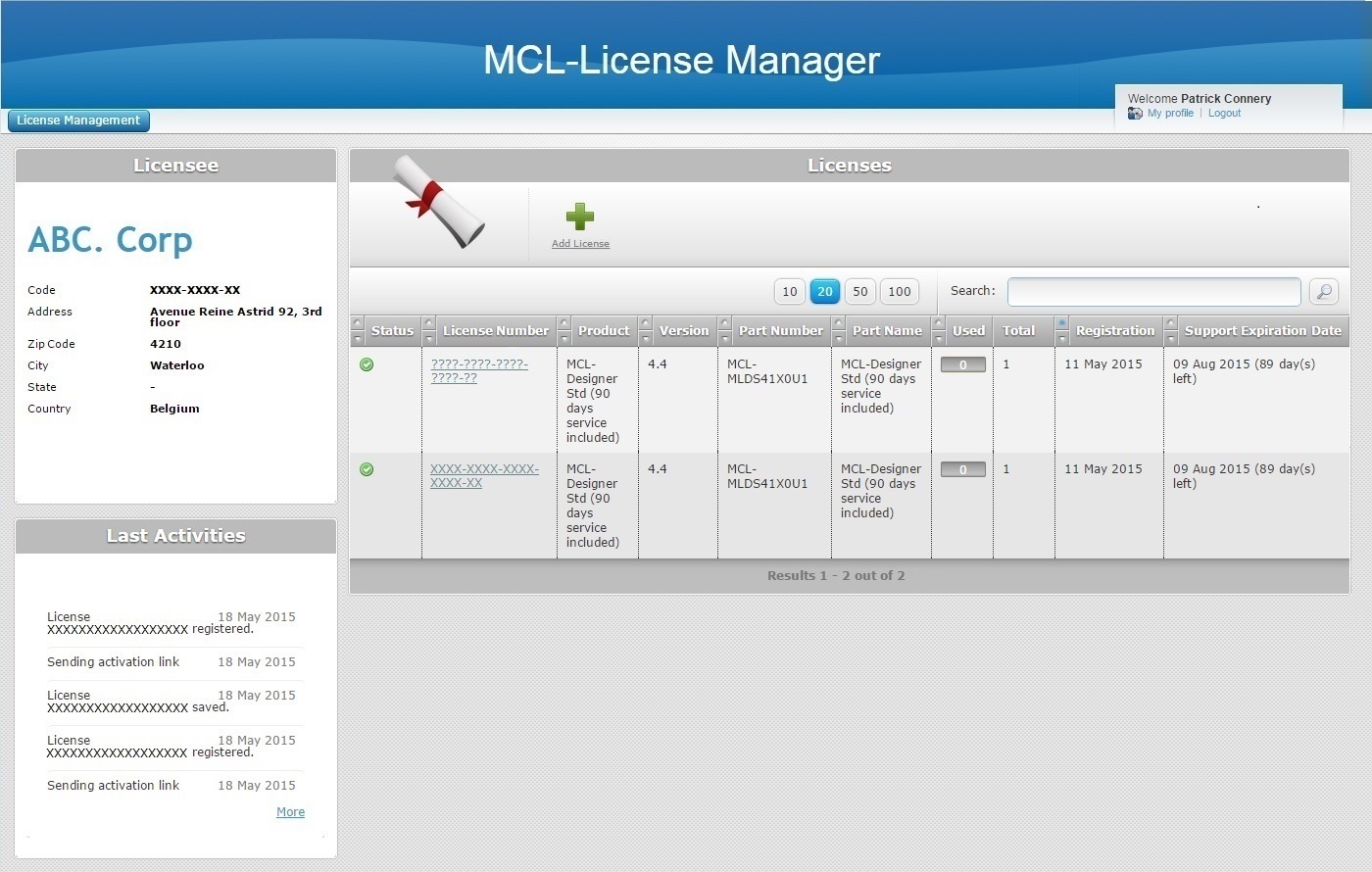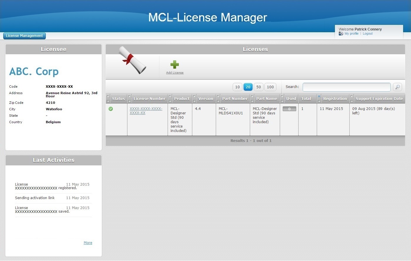 to conclude. This opens your MCL-License Manager account, in the "Licenses" page.