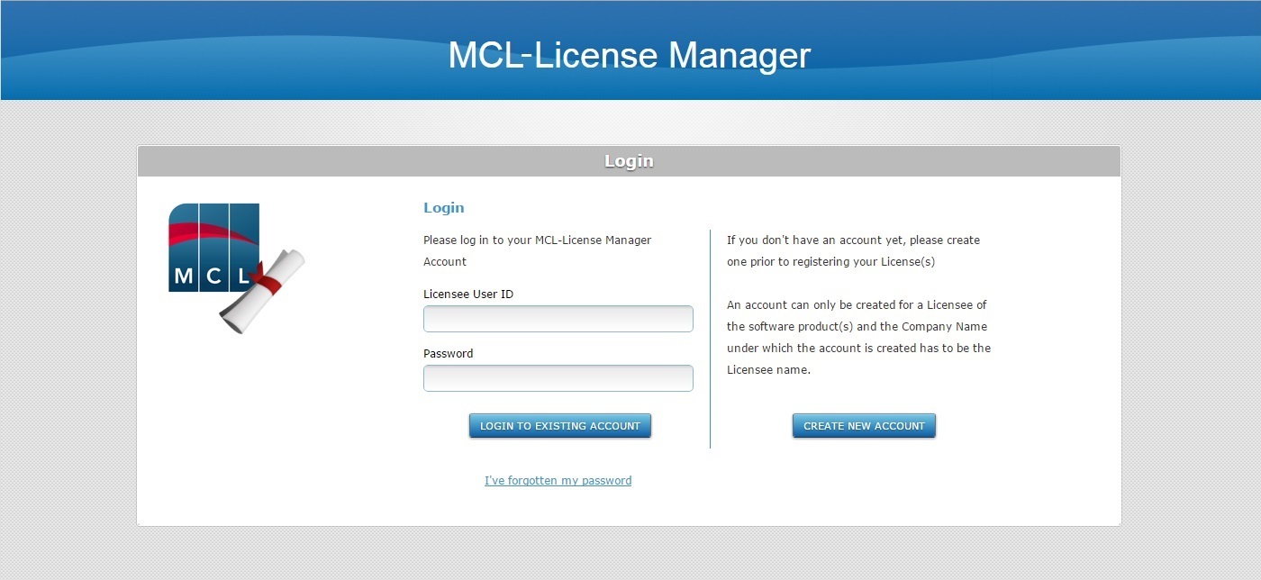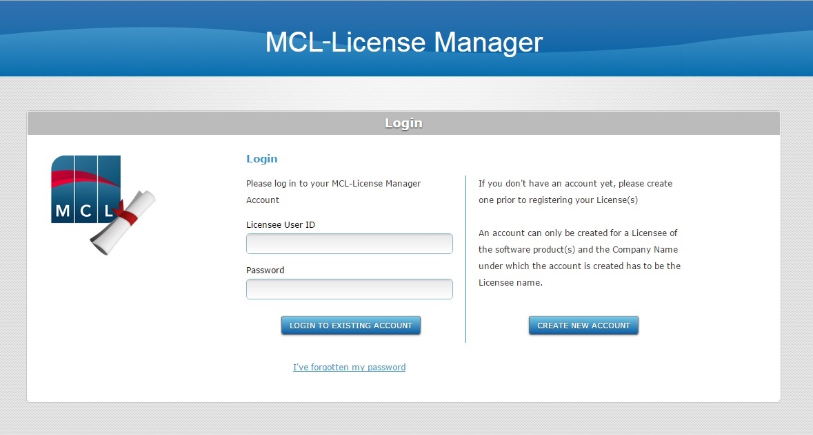 Whenever you want to access MCL-License Manager, use this link or enter https://license.mcl4e.com/mclls/licensing/login.html in your browser and log in.