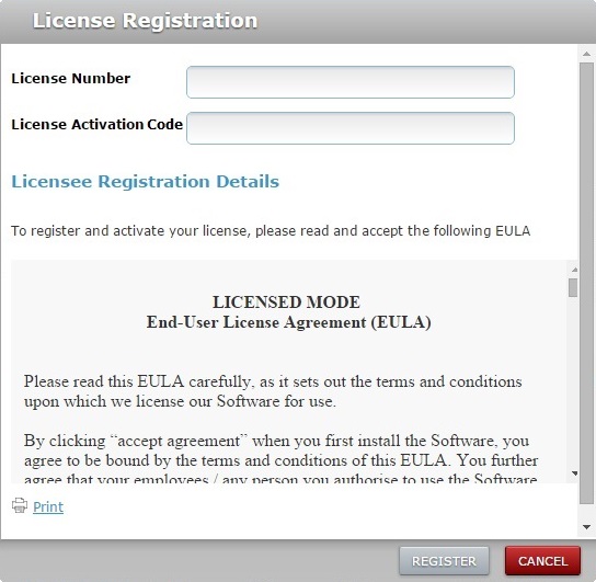3. Enter the license's number and activation code (the information is in the License Delivery Notification email).