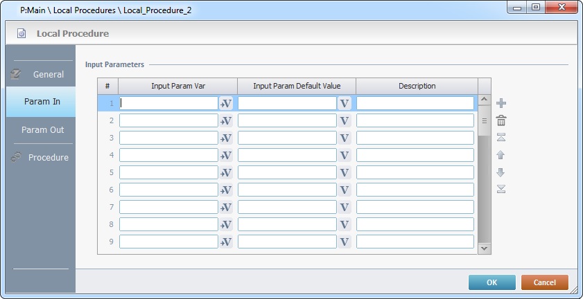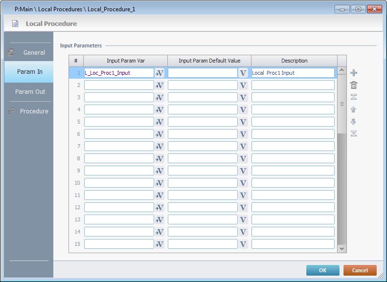 Use this column to add a description for the input parameter - the description will be used to identify the local procedure's input parameter(s) in a "Call Local Procedure" process.